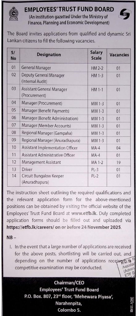 The Employees’ Trust Fund was established on 1st March 1981 under the provisions of  ETF Act No. 46 of 1980. The Fund is administrated by the Employees’ Trust Fund Board and at present the ETF Board is functioning under Hon. Anura Kumara Dissanayake of the Ministry of Finance, Planning and Economic Development