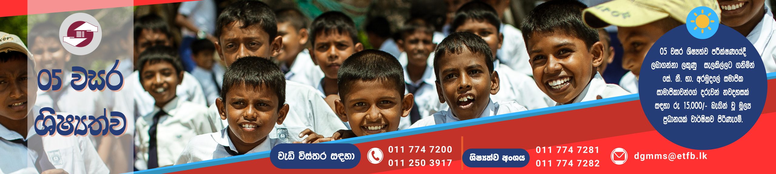 පහ වසර ශිෂ්යත්ව විභාගයෙන් සමත්වන අරමුදලේ සක්රීය සාමාජිකයන්ගේ දරුවන් වෙනුවෙන් ශිෂ්යත්ව පරීක්ෂණයේදී ලබා ගන්නා ලකුණු සැලකිල්ලට ගනිමින් දරුවන් 9000 ක් සඳහා රු.15,000/- බැගින් වූ මූල්ය ප්රදානයන් පිරිනැමීම සදහා අයදුම්පත් භාර ගැනීම ආරම්භ කර ඇත.